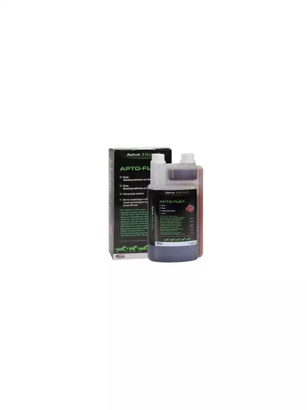 APTUS EQUINE APTO-FLEX VET 1000ml je pětisložkové chondroprotektivum s kyselinou hyaluronovou a antioxidanty pro koně. Obsahuje kys. hyaluronovou, MSM, kolagen, glukosamin sulfát, chondroitin sulfát a antioxidanty.