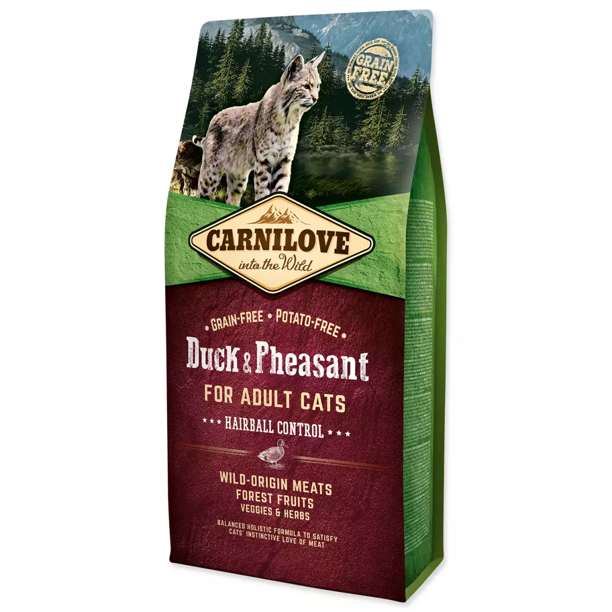 Kachna a bažant tvoří ideální kombinaci chutných a stravitelných složek potravy s vysokým obsahem přirozených živin pro zlepšení metabolismu a perfektní kondici. Zvýšený obsah přírodní vlákniny zlepšuje trávení a přispívá k snažšímu průchodu chlupových chomáčů trávicím traktem. V kombinaci s lesním ovocem, zeleninou a bylinami poskytuje tato receptura každodenně potřebné živiny, vitamíny, minerály a antioxidanty pro perfektní kondici a formování přirozené imunity.