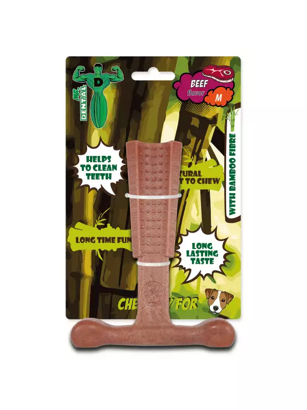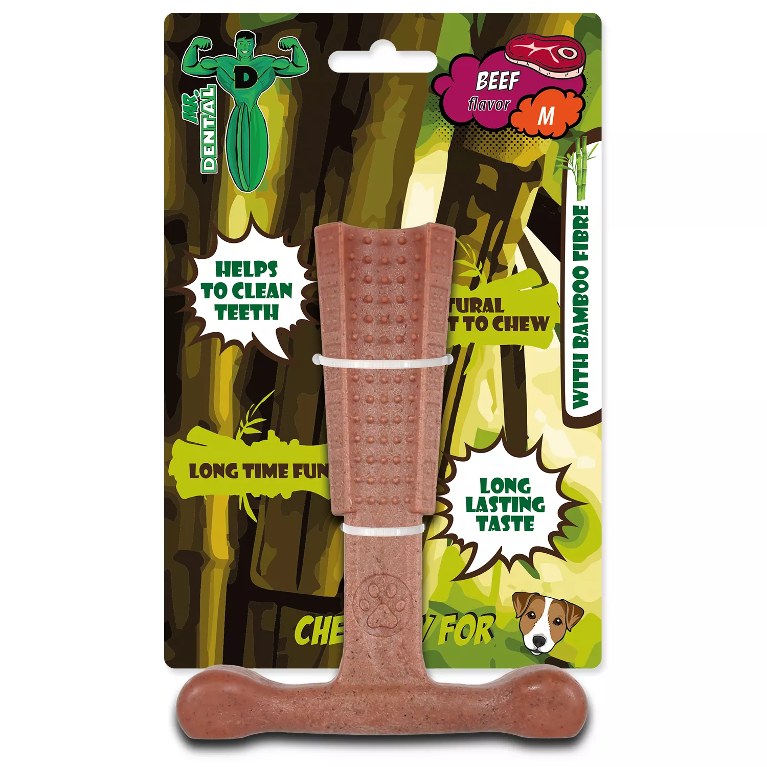 Hračky Mr. Dental Bambones jsou zábavou pro všechny velikosti a plemena psů, která vyhledávají zábavu v podobě žvýkání. Díky dostupnosti v několika velikostech (S, M, L, S/M, L/XL), tvarech (kladivo, klacek, růžek, ypsilon a kost) a vůních (kuře, hovězí a slanina) si na své přijde opravdu každý pejsek.