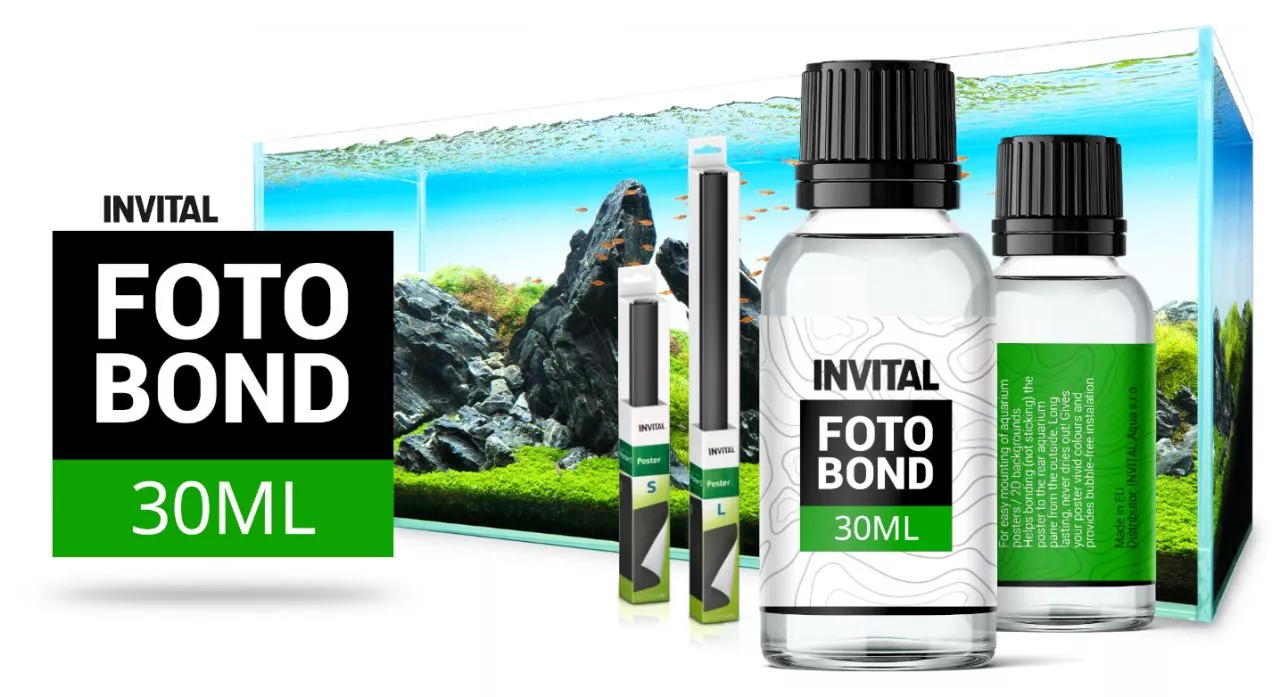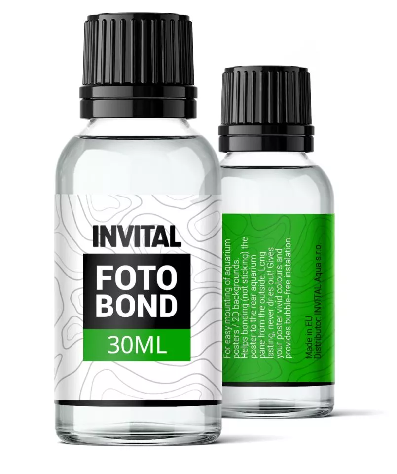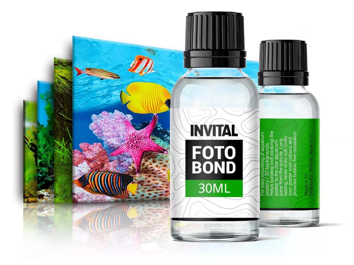INVITAL FotoBond ? je speciální lepidlo pro uchycení akvarijních tapet. Na rozdíl od klasických lepidel či silikonů pomáhá přilnout (nikoliv přilepit) plakát k zadnímu sklu akvária z vnější strany. Díky svému unikátnímu nevysychajícímu složení lepidlo dodává plakátu živé barvy a zajišťuje instalaci bez bublin.