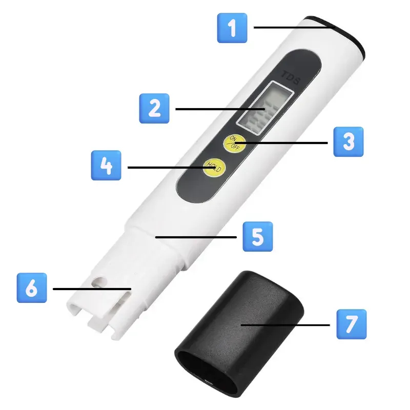 3️⃣ Tlačítko ON/OFF - Slouží k vypnutí a zapnutí TDS metru