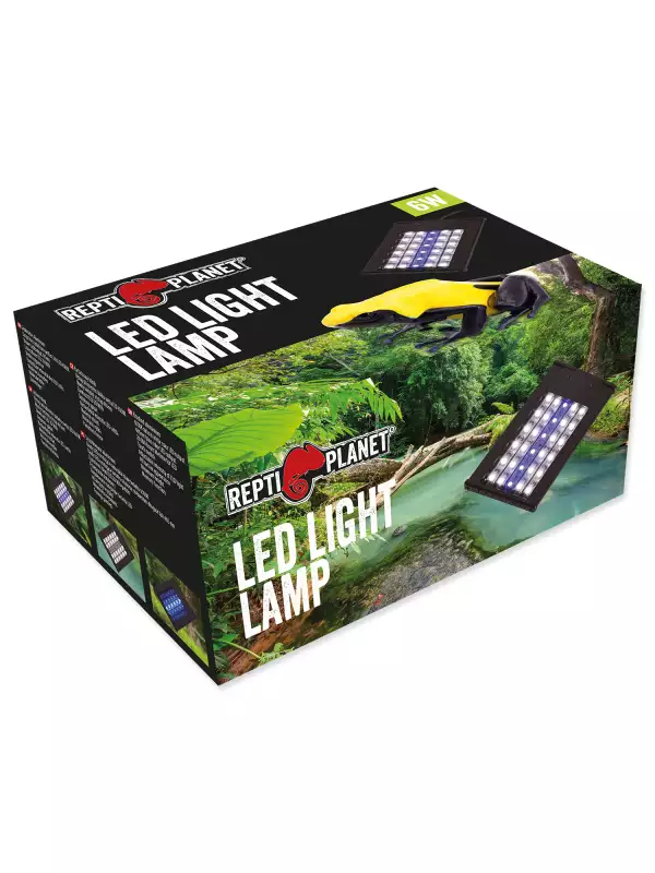 Úsporné hliníkové svítidlo pro zvířata a rostliny. Skládá se z 24 ks 6500k bílých přírodních LED světel a 6 ks 465nm modrých LED světel. Tato lampa je vhodná pro Repti Planet terária, akrylové chovné nádrže a další terária a akvária.